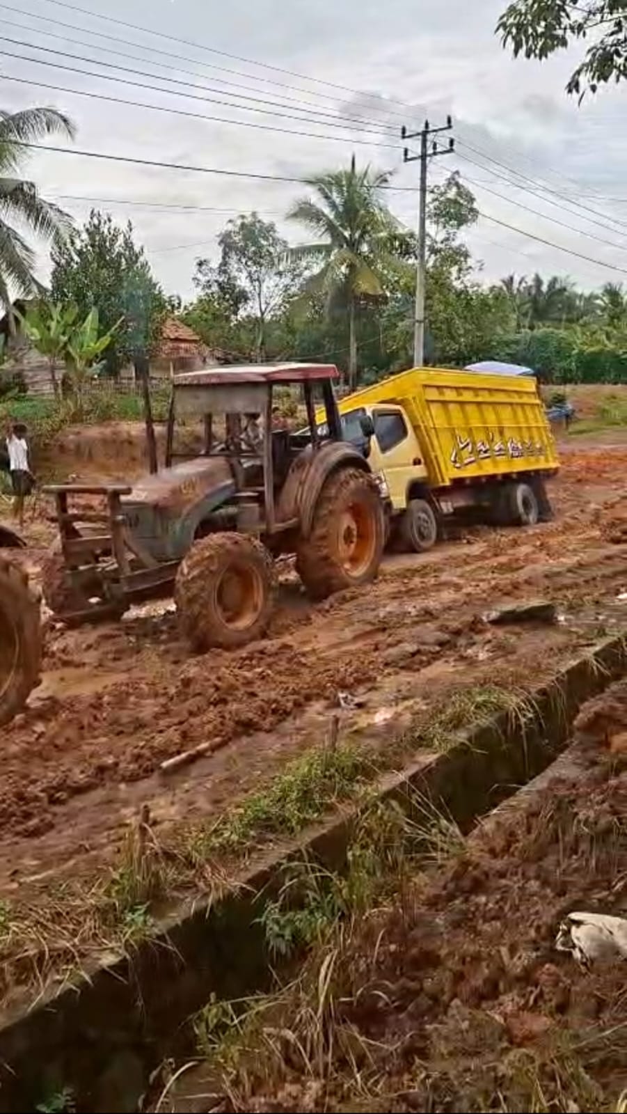 Truk pengangkut hasil perkebunan tidak bisa melewati jalan ini, terutama setelah hujan. Kondisinya makin parah hingga harus ditarik menggunakan traktor,” Ungkap Siswanto.